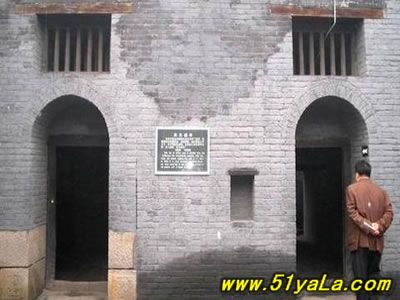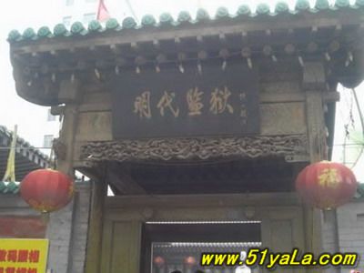 “蘇三監(jiān)獄”在今洪洞縣政府院內(nèi)西南,亦即明洪洞縣衙西南角。一進(jìn)掛有“明代監(jiān)獄”匾額的大門,首先看到的便是蘇三的塑像,外院當(dāng)年監(jiān)獄的辦公場(chǎng)所,右邊的院落是普通監(jiān)牢,中間是過道,兩邊共有監(jiān)牢十余間,過道頂上布有鐵絲網(wǎng),網(wǎng)上掛有銅鈴,一有犯人企圖越墻逃跑,便會(huì)觸響銅鈴。過道的盡頭,正對(duì)的是獄卒的值班室,右面的墻上有獄神的供位,傳說當(dāng)年囚犯入獄都要參拜獄神,就是獄神下面的墻基處,有一小洞,是當(dāng)年運(yùn)送尸體的出口,犯人在獄中病死或是被打死,是不能從大門抬出去的,只能從這個(gè)小洞拉出去。過道盡頭的左邊,便是死囚牢的大門,死囚牢雙門雙墻,門上畫有狴犴,狴犴是龍的兒子,長(zhǎng)得卻象老虎,因此人們誤稱為“虎頭牢”,大約是因?yàn)辇埳抛?,子子不同,狴犴專門掌管刑獄,大門只有一米六高,所有進(jìn)入死囚牢的人都要在狴犴像前低頭,顯示對(duì)法律的敬畏。進(jìn)了門洞,里面還有一道門,而這兩道門卻是一扇從右開,一扇從左開,不明就里的囚犯如果越獄,往往出了第一道門卻怎么也打不開第二道門,一個(gè)小小的改動(dòng)就能起到拖延犯人越獄時(shí)間的作用,不能不佩服古人的智慧。進(jìn)入死牢院,右面是一堵高墻,左面就是當(dāng)年關(guān)押蘇三的牢房,里面有蘇三的塑像。死囚院的中央還有當(dāng)年蘇三坐監(jiān)時(shí)洗衣的水井和石槽,井口留有一道道繩索磨下的印記,井口只有半尺多寬,這是為了防止死囚投井自殺。據(jù)說,右面的高墻里灌裝的都是流沙,如果犯人想要挖墻越獄,流沙便會(huì)從挖開的小口中源源不斷地流來,使其難以挖通圍墻。1964年我國著名考古學(xué)家王冶秋先生曾在洪洞考察確認(rèn),蘇三監(jiān)獄為我國罕見的明代監(jiān)獄,并題詩曰:“虎頭牢里羈紅妝,一曲攪亂臭水漿。王三公子今何在?此處空留丈八墻?!笔陝?dòng)亂期間,蘇三監(jiān)獄被拆毀。為了使“蘇三監(jiān)獄”這一僅存的明代監(jiān)獄得以保留,洪洞縣人民政府后做出了修復(fù)“明代蘇三監(jiān)獄”的決定。修復(fù)事宜于1984年5月開始,同年10月竣工。