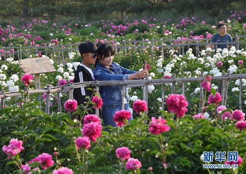 6月2日,游客在和林格爾縣南山旅游景區(qū)觀賞芍藥花。當(dāng)日,2018內(nèi)蒙古和林格爾第九屆芍藥文化旅游節(jié)在和林格爾南山旅游景區(qū)開(kāi)幕。景區(qū)內(nèi)數(shù)百畝芍藥花競(jìng)相綻放,吸引眾多游客前來(lái)觀賞。新華社記者 鄒予 攝