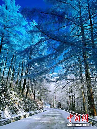 湖北現(xiàn)“林海雪原” 銀裝素裹風景如畫