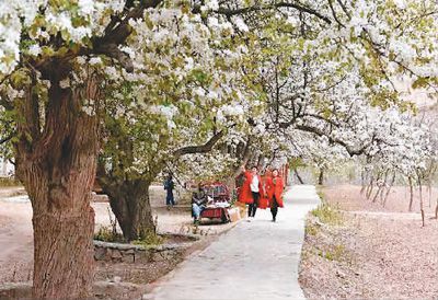 這三處地方的河畔灘地上,有先祖留下的幾千棵老梨樹(shù)。其中南長(zhǎng)灘的梨樹(shù)最為古老,當(dāng)?shù)乩先苏f(shuō)有400多年的歷史。生活在南長(zhǎng)灘的百姓拓姓居多,有人據(jù)此考證認(rèn)為這里的人們是西夏黨項(xiàng)拓跋氏的后裔。