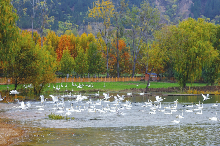 運(yùn)城的冬天,吸引了大天鵝、火烈鳥、反嘴鷸、蒼鷺、棕頭鷗、灰鶴、黑翅長(zhǎng)腳鷸等近200種野生鳥類。當(dāng)成群的大天鵝從遙遠(yuǎn)的西伯利亞飛抵運(yùn)城,在運(yùn)城鹽湖景區(qū)、平陸大天鵝景區(qū)、芮城圣天湖景區(qū),均呈現(xiàn)出“萬頃河水碧、一池雪花白”的壯觀景象,三大天鵝觀賞景區(qū)同步開放。成千上萬只白天鵝在黃河岸畔或自在游弋,或追逐戲水,或引吭高歌,為冬日的黃河流域運(yùn)城段增添了悠然靈動(dòng),讓人在此如臨仙境,流連忘返。為方便廣大游客參觀游覽,運(yùn)城免費(fèi)開放冬觀天鵝專線城景通,期間周六開設(shè)平陸專線,途經(jīng)鹽湖景區(qū)、周倉文化園、平陸大天鵝景區(qū)等,周日開設(shè)芮城專線,途經(jīng)鹽湖景區(qū)、圣天湖、永樂宮、廣仁王廟、城隍廟等,法定節(jié)假日兩條線同時(shí)運(yùn)行,可在運(yùn)城高鐵站、北郊億適家超市、運(yùn)城火車站等市區(qū)公交站點(diǎn)乘坐。