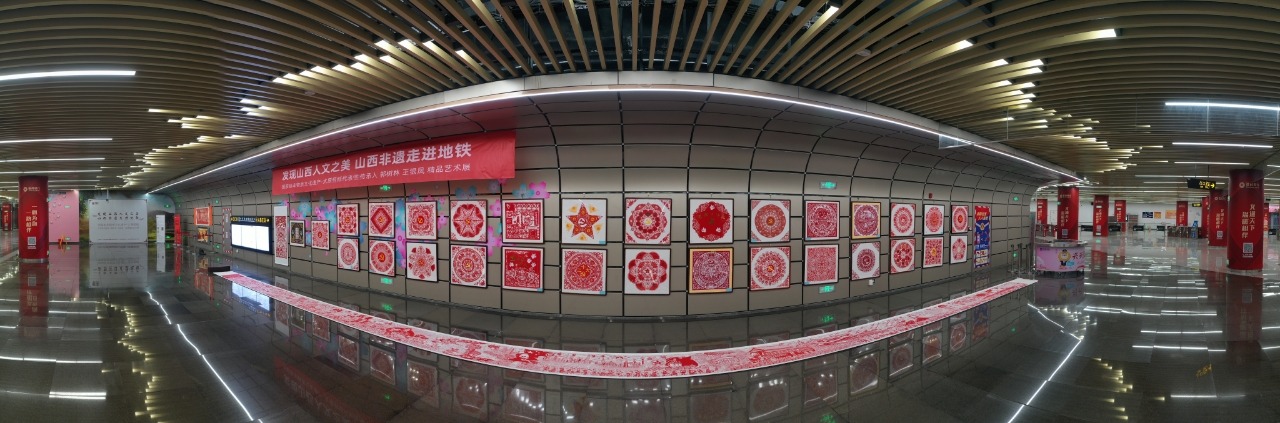 國家級非物質(zhì)文化遺產(chǎn)代表性項目太原剪紙在太原地鐵2號線長風街站展示。井宇豪 攝