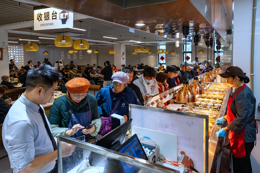 2025年11月18日,游客們在四川博物院食堂內(nèi)排隊選菜。新華網(wǎng) 張可凡 攝