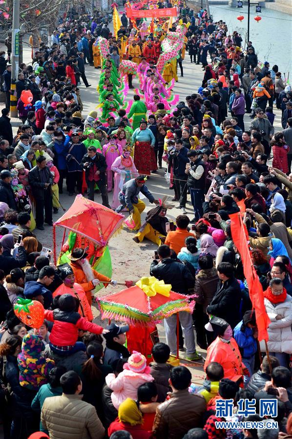 2月21日,社火隊(duì)在進(jìn)行巡游拜年。當(dāng)日,有著千年歷史的傳統(tǒng)村落——山東省章丘市三德范村組織31個(gè)社火隊(duì)舉行社火巡游拜年活動(dòng),在元宵佳節(jié)來臨之際為鄉(xiāng)親們送祝福。新華社記者 郭緒雷攝