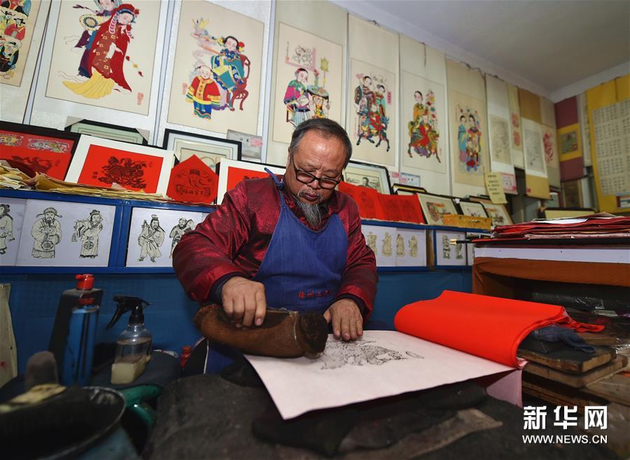 春節(jié)期間,山西省新絳縣的絳州木版年畫(huà)傳承人吳百鎖忙得不可開(kāi)交,來(lái)購(gòu)買(mǎi)“吉祥如意”“雄雞一唱天下白”等主題年畫(huà)的顧客絡(luò)繹不絕。山西省非物質(zhì)文化遺產(chǎn)絳州木版年畫(huà)發(fā)端于宋金,興盛于明清,從選料到雕刻再到上色都非常講究,一幅年畫(huà)的制作需要七八道精細(xì)工序。隨著時(shí)代的變遷,目前已鮮有專職雕刻、印制年畫(huà)的匠人。擁有嫻熟雕刻技藝的吳百鎖在傳承傳統(tǒng)工藝的基礎(chǔ)上,積極創(chuàng)作現(xiàn)代題材的作品,希望通過(guò)自己的創(chuàng)新讓更多少年兒童了解并愛(ài)上木版年畫(huà),讓這門(mén)幾乎失傳的技藝綻放新的光彩。新華社記者 曹陽(yáng) 攝