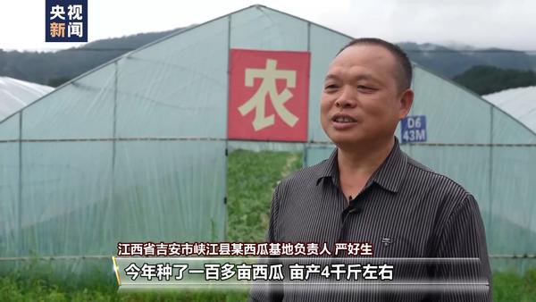 江西省吉安市峽江縣某西瓜基地負(fù)責(zé)人 嚴(yán)好生:今年種了一百多畝西瓜,畝產(chǎn)4千斤左右,預(yù)計總產(chǎn)值在40萬以上。