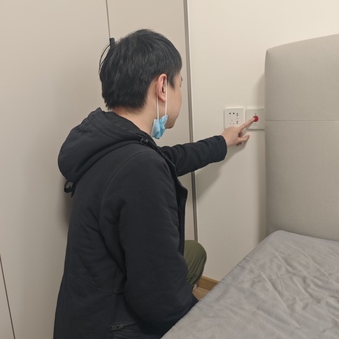 10月29日,記者首先來(lái)到諾德逸府小區(qū)1號(hào)樓的居民家中走訪(fǎng)。只見(jiàn)緊急呼叫按鈕裝置位于主臥室的墻上,緊靠著床頭,裝置的中間是一個(gè)紅色按鈕,下面還有“SOS”“緊急呼叫”的字樣。記者按下按鈕,沒(méi)發(fā)現(xiàn)任何反應(yīng),既沒(méi)有燈光閃爍,也沒(méi)有撥號(hào)的聲音。