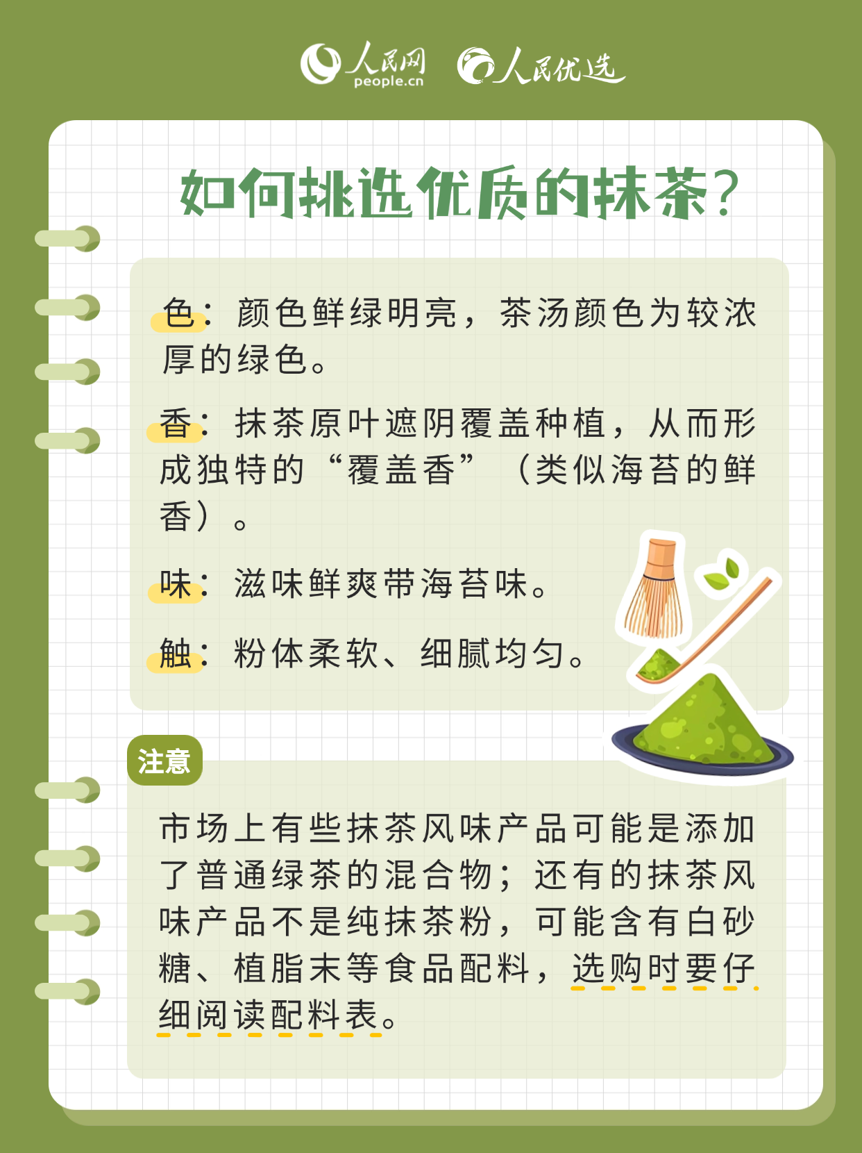 抹茶因香氣獨(dú)特、口感層次豐富、色澤翠綠悅目,受到很多人的喜愛(ài)。市面上抹茶冰淇淋、抹茶蛋糕、抹茶飲品等各種抹茶風(fēng)味制品層出不窮。抹茶到底是什么茶?選購(gòu)抹茶應(yīng)留意什么?本期《人民優(yōu)選來(lái)了》,帶您讀懂這抹綠。