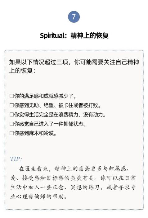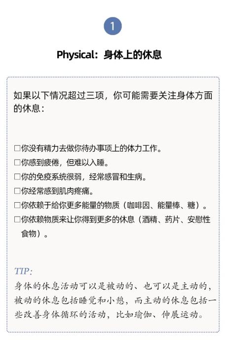 有內(nèi)科醫(yī)生根據(jù)研究和臨床經(jīng)驗(yàn),提出了7種類(lèi)型的休息方式,幫助我們確定最需要哪一種。