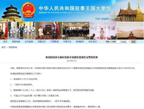 日前,泰國政府發(fā)布公告,對包括中國大陸和中國臺灣地區(qū)在內(nèi)的21個國家和地區(qū)的游客實行的免除落地簽證費措施延長至2019年4月30日。