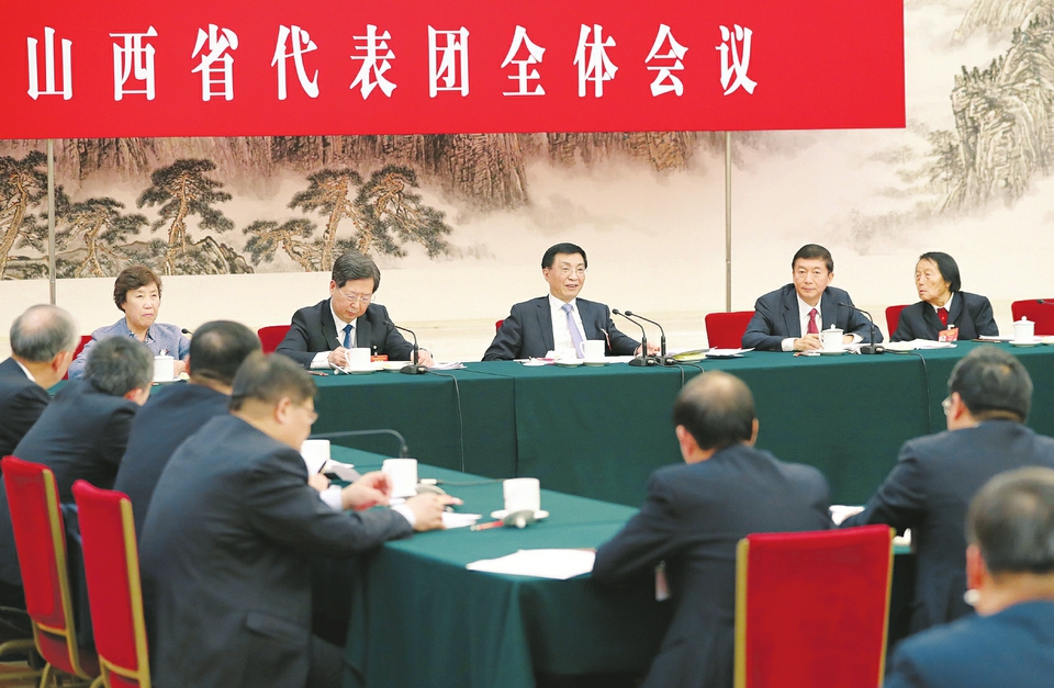 本報(bào)北京電(記者尚慧輝 楊文)3月12日下午,十三屆全國(guó)人大二次會(huì)議山西代表團(tuán)舉行全體會(huì)議。中共中央政治局常委、中央書記處書記王滬寧與代表們一同審議。