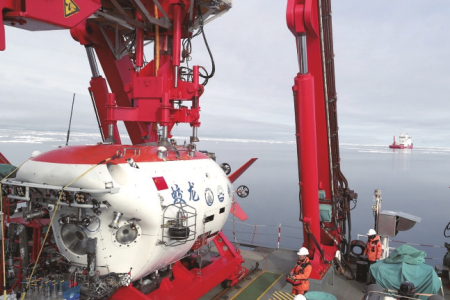 “蛟龍”號(hào)在北極冰區(qū)下潛(8月6日攝)。