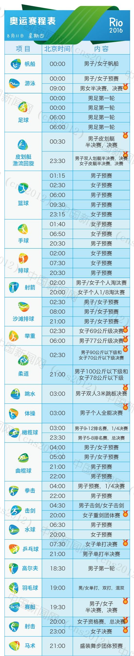 里約奧運會完整賽程表