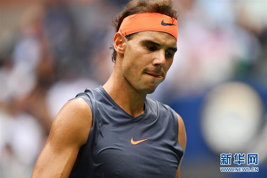 9月7日,納達(dá)爾在比賽中。 當(dāng)日,在2018美國網(wǎng)球公開賽男單半決賽中,西班牙選手納達(dá)爾在大比分0比2落后時因傷退賽,阿根廷選手德爾波特羅晉級決賽。 新華社記者劉杰攝