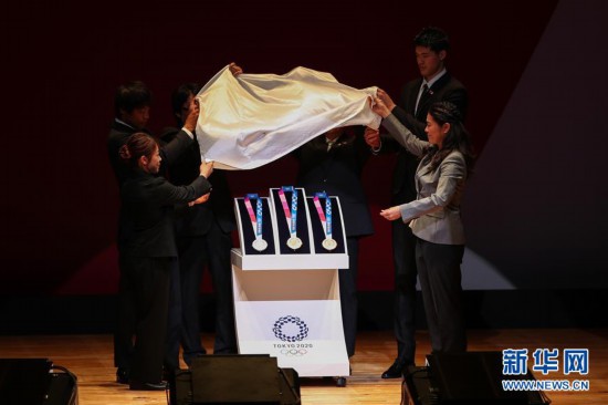 7月24日,在2020年東京奧運(yùn)會倒計(jì)時(shí)一周年儀式現(xiàn)場,嘉賓揭曉東京奧運(yùn)會獎牌。 當(dāng)日,在2020年東京奧運(yùn)會倒計(jì)時(shí)一周年之際,東京奧組委公開獎牌設(shè)計(jì)。 新華社記者杜瀟逸攝