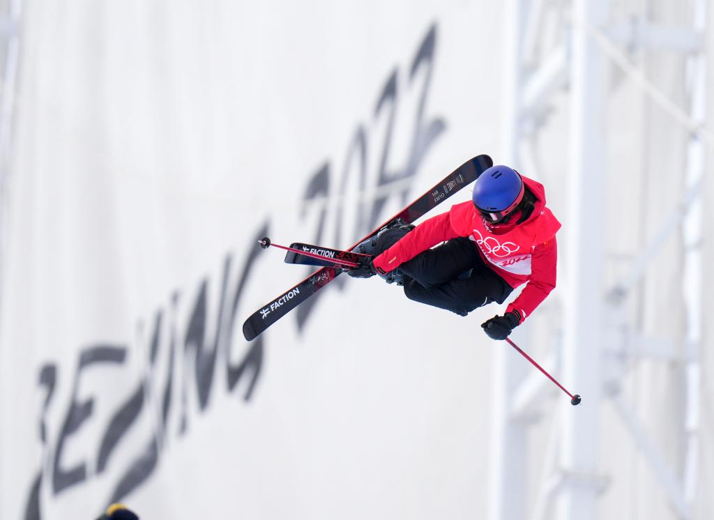2月17日,中國隊選手谷愛凌在北京冬奧會自由式滑雪女子U型場地技巧資格賽中。新華社記者劉潺攝