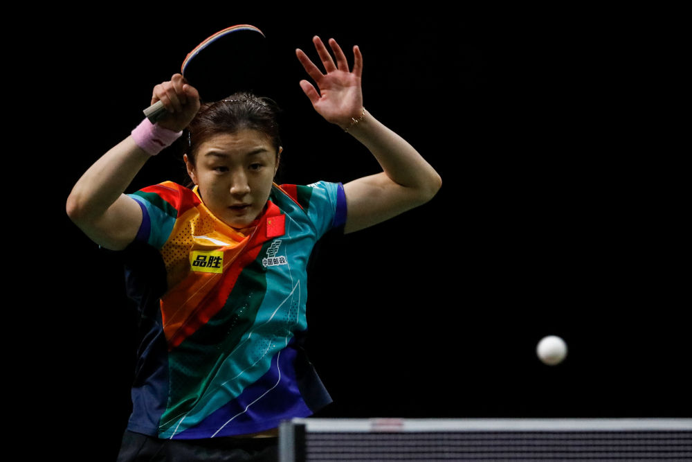 5月22日,陳夢在比賽中回球。新華社記者 李亞輝 攝
