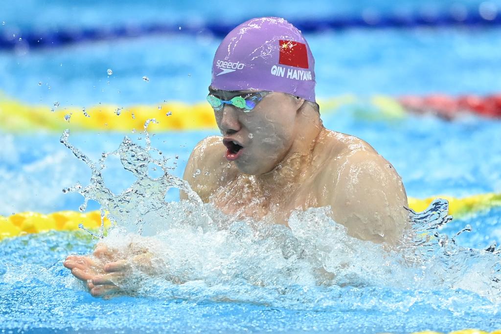 本年度世界杯共設(shè)三站,柏林為第一站,在杭州亞運(yùn)會(huì)獲得“最有價(jià)值運(yùn)動(dòng)員”的張雨霏和覃海洋以及年輕選手董志豪代表中國隊(duì)參賽。 世錦賽“三冠王”覃海洋在柏林站繼續(xù)蛙泳“套餐”,改寫三項(xiàng)世界杯紀(jì)錄:50米26秒29;100米57秒69,平亞洲紀(jì)錄;200米2分07秒45。董志豪以2分08秒60獲得200米蛙泳銀牌。其中,100米蛙泳堪稱“強(qiáng)強(qiáng)對抗”:覃海洋與英國的兩屆奧運(yùn)冠軍皮蒂、今年世錦賽的并列亞軍三人組——荷蘭的坎明加、意大利的馬丁嫩吉和美國老將尼克·芬克同場較量,最終覃海洋更勝一籌,皮蒂名列第六。