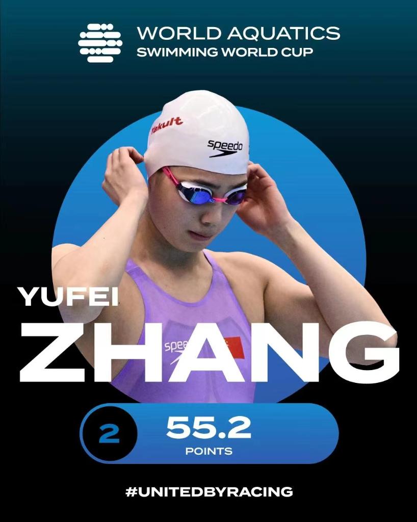 繼世錦賽、大運(yùn)會(huì)和亞運(yùn)會(huì)后“連軸轉(zhuǎn)”的“勞?!睆堄牿瓟埖门?00和200米蝶泳金牌,在50米蝶泳中不敵世界紀(jì)錄保持者舍斯特倫摘得銀牌,在本站女子組積分榜上尾隨麥基翁排第二位。