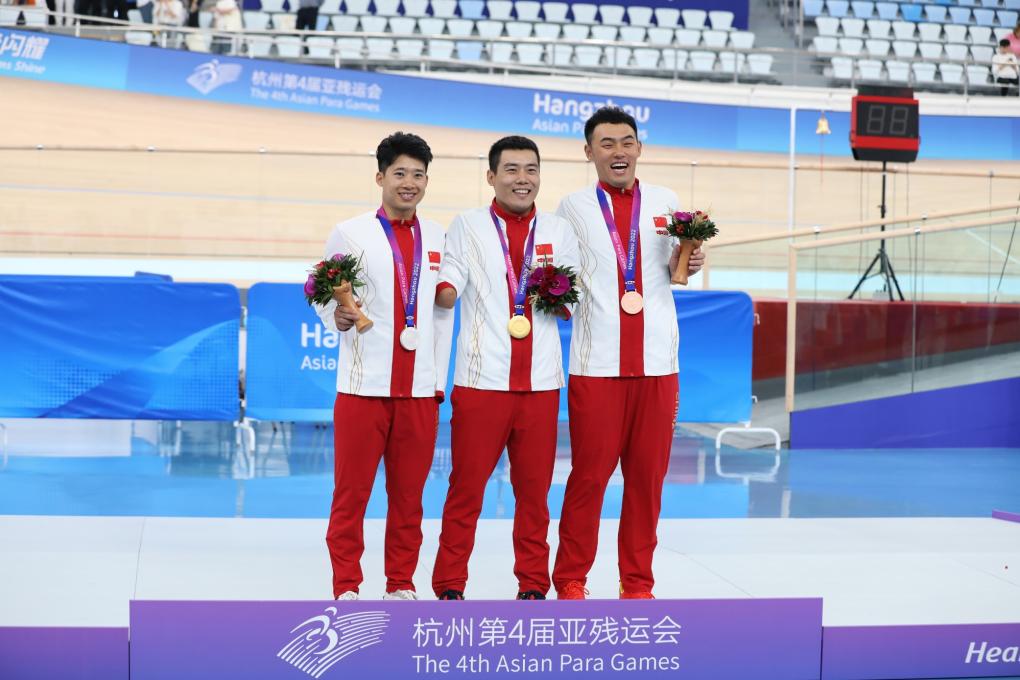 在男子個人C1-3級1000米計時賽中,兩名中國選手李樟煜、梁偉聰發(fā)揮穩(wěn)定,為中國隊(duì)包攬冠亞軍;日本選手川本翔大獲得銅牌。