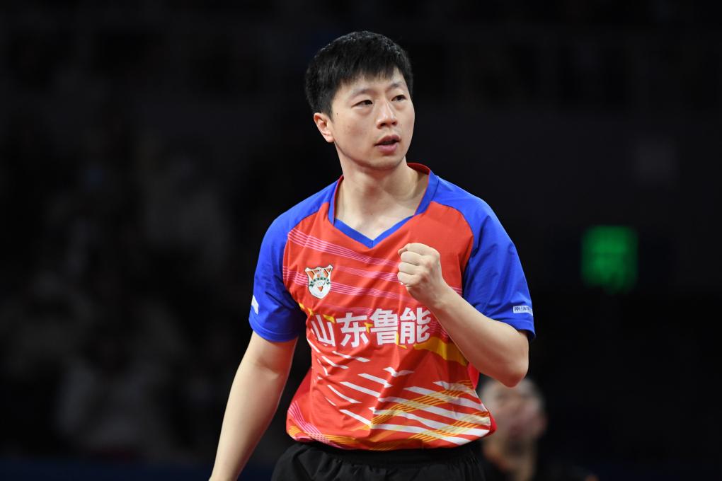 12月24日,山東魯能隊選手馬龍在男單比賽中慶祝得分。新華社記者 梁旭 攝