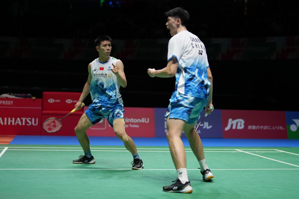8月22日,劉圣書/譚寧(右)在比賽中。新華社記者 張笑宇 攝 男雙方面,在與中國(guó)臺(tái)北組合李哲輝/楊博軒的比賽中,中國(guó)隊(duì)的陳柏陽(yáng)/劉毅以17:21先失一局,但隨后以兩個(gè)21:17連扳兩局,逆轉(zhuǎn)取勝。