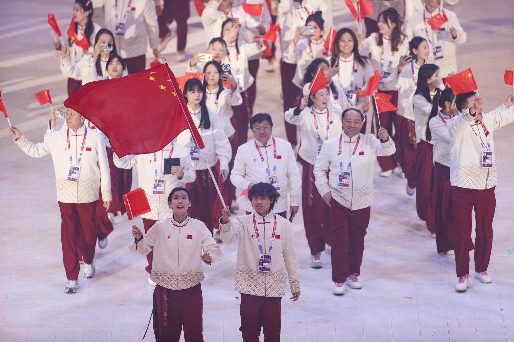 1月13日,中國大學生體育代表團在開幕式上入場。新華社記者 李京 攝