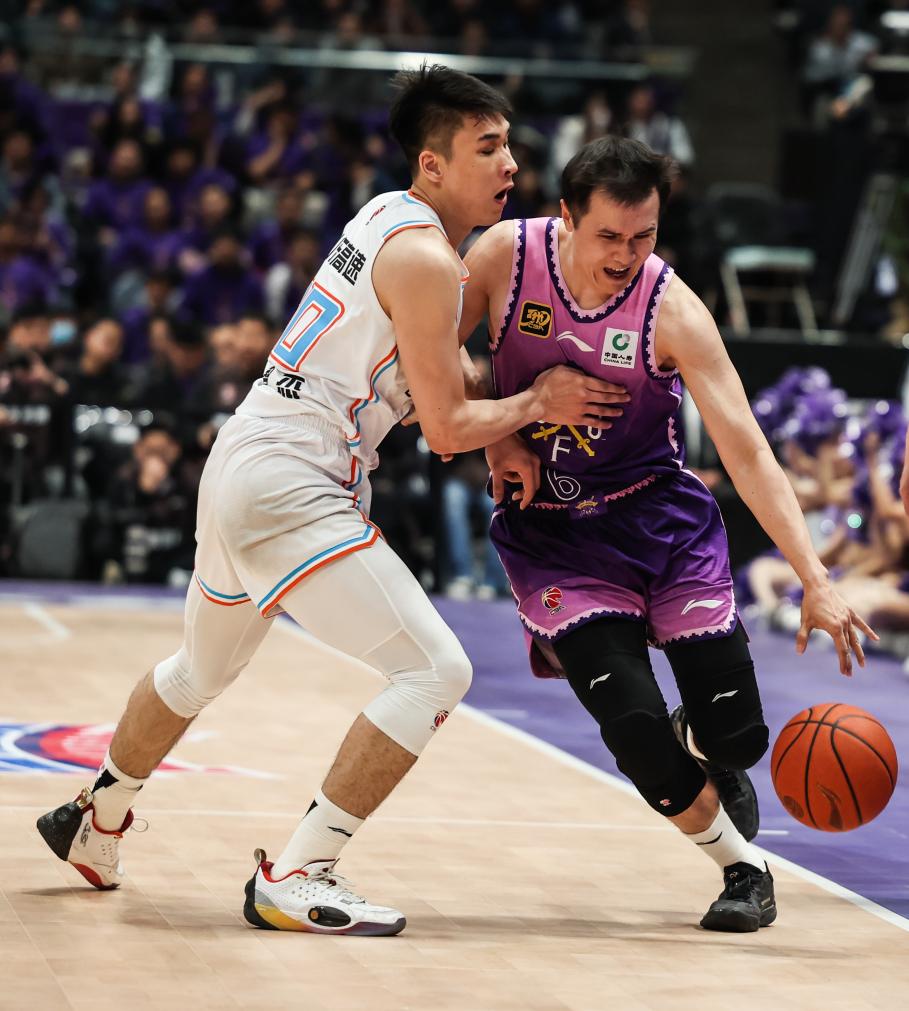 4月8日,北控隊球員張帆(右)在比賽中突破。新華社記者 王楷焱 攝
