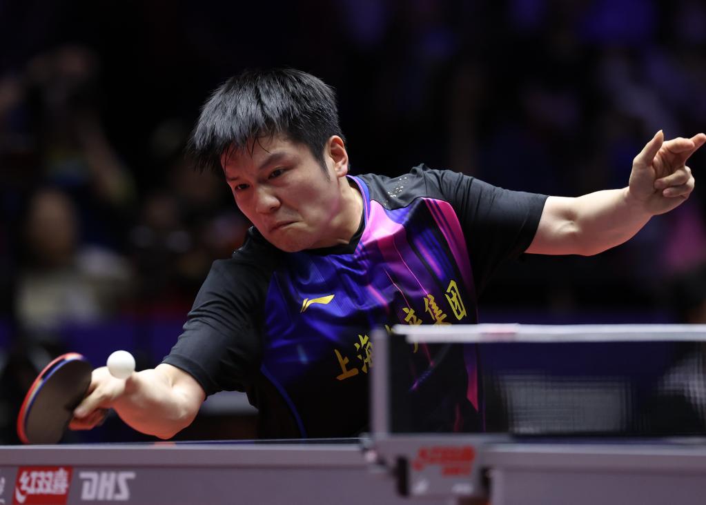 6月11日,樊振東在比賽中回球。新華社記者 楊世堯 攝