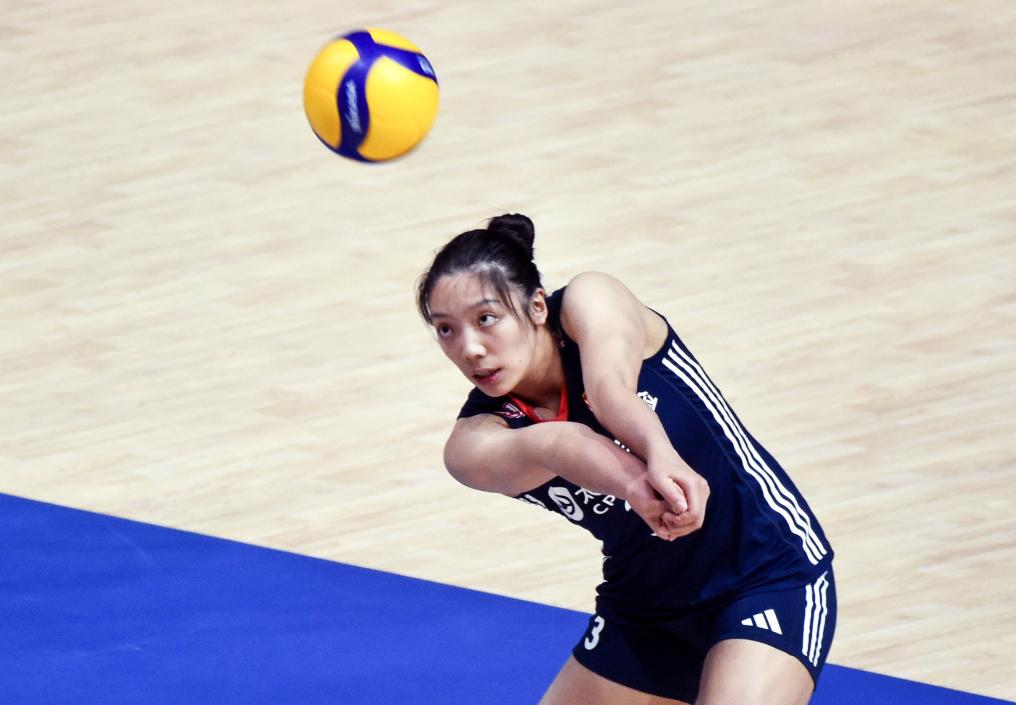 6月22日,中國隊球員唐欣在比賽中墊球。新華社發(fā)(盧炳輝攝)