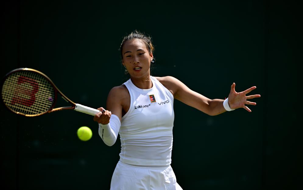 7月1日,鄭欽文在比賽中回球。新華社記者 李穎 攝