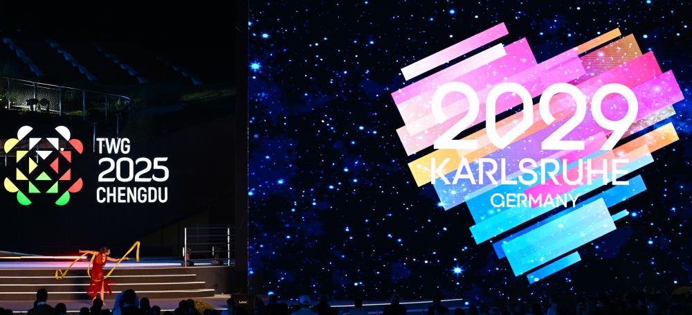 成都世運(yùn)會組委會主席施小琳、國際世界運(yùn)動會協(xié)會主席何塞·佩魯雷納先后致辭,向為本屆世運(yùn)會圓滿成功作出貢獻(xiàn)的所有人員表示感謝。下屆世運(yùn)會舉辦城市德國卡爾斯魯厄市市長弗蘭克·門特魯普致辭,熱情邀請全球賓客四年后相聚卡爾斯魯厄。