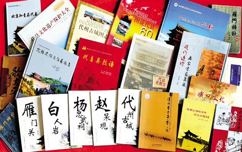 由程培甫、馮祥主編的《雁門碑抄》收錄了唐代以來鐫刻在代縣各地的古碑碑文98篇,詔、敕、封誥19篇,從不同的側(cè)面反映和記錄了代縣悠久的歷史和博大的文化內(nèi)涵,是挖掘、整理、弘揚雁門文化極其珍貴的歷史資料。由王文藻主編的《雁門詩抄》,分“人物篇”和“形勝篇”兩本?!叭宋锲眳R集了有詩詠代的代州人,或在代地作過官,或因事涉足過代地的83位歷史人物和詠贊他們的230首詩詞,意在讓今人了解古人的業(yè)績政聲,學(xué)習(xí)古人的品格情操?!靶蝿倨眲t收集了歷代仕宦、詩人、騷客、雅士游覽代州時寫下的300多首詠贊代州壯美山河、名樓勝跡的古代詩詞,意在讓今人更好地挖掘、了解、弘揚博大精深的雁門文化,推動代縣旅游事業(yè)的發(fā)展,促進縣域經(jīng)濟的振興。2008年由山西人民出版社出版的《代縣老照片》,收集了代縣從清朝末年到上世紀50年代拍攝的360多幅珍貴的歷史照片,分為古城遺跡、雁門雄關(guān)、教育篇章、代商風(fēng)采、社會百態(tài)、名人佚事、革命史詩等七個篇章,結(jié)為一集。翻閱這些泛黃的老照片,讀者可以欣賞文化名城宏偉壯觀的古老建筑,瞻仰歷史名人的風(fēng)姿俊采,領(lǐng)略代州驕子的雄才大略,感受有識之士的宏圖大志,體會莘莘學(xué)子的凌云壯志……透過這些老照片,我們既能追尋歷史,更可展望未來。2009年出版的《圖說代縣60年》,以編年體的形式,按照時間順序,選取每年在代縣大地上發(fā)生的重大事件、重要人物,或是能真實反映當(dāng)時當(dāng)?shù)鼐哂袝r代特色、風(fēng)土人情的歷史照片780多幅,配以簡明扼要的文字說明,形象生動地再現(xiàn)了新中國成立60年來代縣發(fā)展變化的歷史進程,是新中國60年發(fā)展變化的一個縮影。它所包含的信息和所起到的作用會超越時空,成為后人認識歷史演變的生動教材。同年出版的《代縣古城圖志》則以圖文并茂的形式,向讀者介紹了代州古城的歷史沿革、代州古城的城垣、街衢、商貿(mào)、衙廨、教育、寺廟、風(fēng)俗風(fēng)物、歷史人物等內(nèi)容,展示了古代州悠久的歷史和深厚的文化底蘊,為人們提供了一個了解代州古城的窗口。