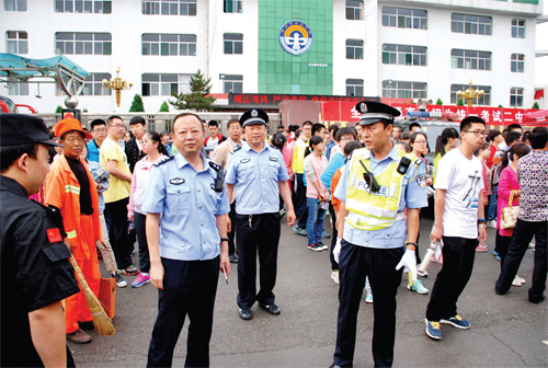 市公安局副局長、交警支隊(duì)長袁小波在高考現(xiàn)場指揮調(diào)度