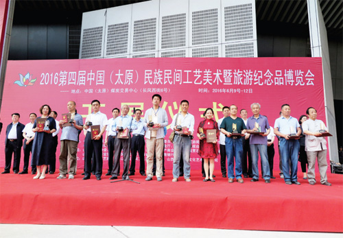 本報(bào)訊 6 月9 日至12 日,由中國(guó)民族民間工藝美術(shù)家協(xié)會(huì)、山西省經(jīng)信委、省旅游局、省文聯(lián)、省貿(mào)促會(huì)、山西中華文化促進(jìn)會(huì)、山西廣播電視臺(tái)、山西日?qǐng)?bào)傳媒集團(tuán)共同主辦,山西省民間文藝家協(xié)會(huì)、省民間工藝美術(shù)家協(xié)會(huì)等承辦的2016 第四屆中國(guó)(太原)民族民間工藝美術(shù)暨旅游紀(jì)念品博覽會(huì)在太原煤炭交易中心舉行。來自全國(guó)20 多個(gè)省市及港臺(tái)地區(qū)的200 多家工藝美術(shù)和旅游紀(jì)念品企業(yè)參展,薈萃展出了數(shù)千件工藝美術(shù)大師的精品力作。