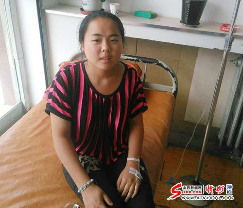 圖為石松梅因闌尾炎復發(fā)在診所打點滴