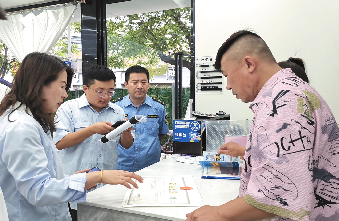 今年6月,市市場監(jiān)管局工作人員向商戶解讀“惠商?!崩碣r范圍與申報(bào)流程。