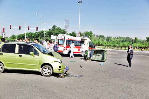 5月23日,在忻州市區(qū)梨花街與建設(shè)路口發(fā)生一起汽車(chē)與電動(dòng)三輪車(chē)相撞事故。在此提醒廣大司機(jī)朋友及行人,遵守交通規(guī)則,注意行車(chē)安全,謹(jǐn)慎駕駛,必免事故發(fā)生。(張存良 攝)