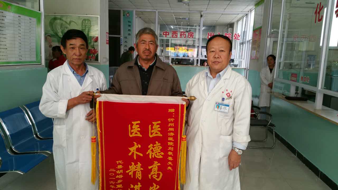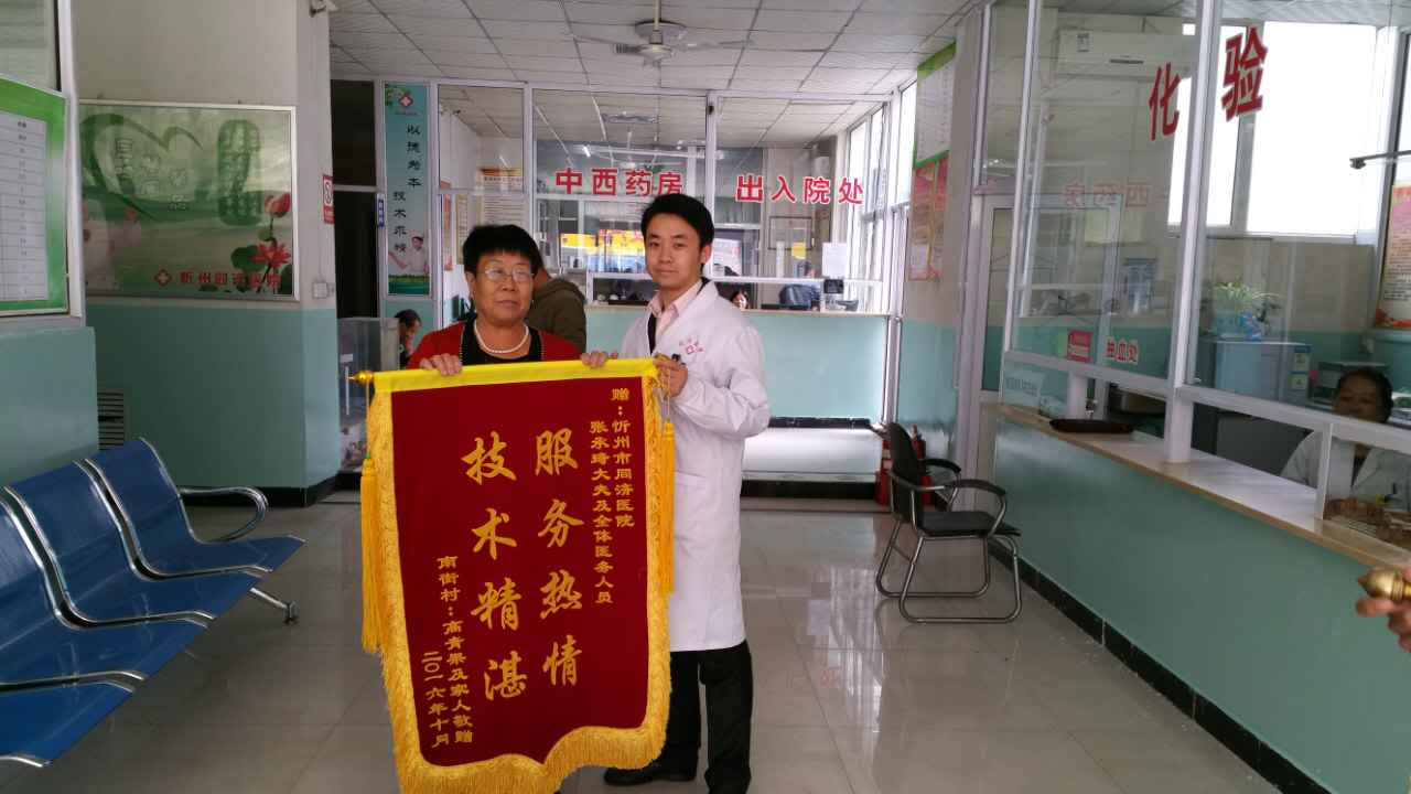 “謝謝您!張大夫,我現(xiàn)在精神好多了,睡眠也好了,吃飯也有胃口了……真是不知道怎樣感謝您才好。”10月8日,位于忻州市光明西街的同濟(jì)醫(yī)院辦公室,高老先生夫婦握著張大夫的手激動地說。其妻子郝女士將早已準(zhǔn)備好的一面“服務(wù)熱情,醫(yī)術(shù)精湛”的錦旗送到張成喜大夫手中。同樣來自代縣胡峪鄉(xiāng)的賈先生也將一面寫有“醫(yī)德高尚,醫(yī)術(shù)精湛”的錦旗送到了該院寧院長手中。