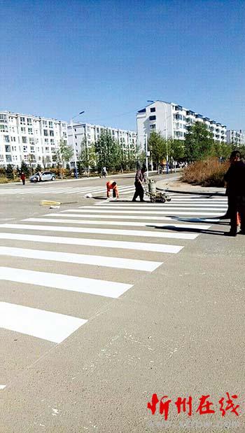 通過細致排查,交警大隊在廣惠園十字路口安裝紅綠燈一處,并在廣惠園與文淵路十字路口、通惠路與文淵路十字路口、通惠路與向陽街十字路口三處畫上了斑馬線,規(guī)范了城區(qū)通行秩序,為進一步保障道路安全打下了堅實的基礎(chǔ)。圖為工作人員正在道路上噴畫斑馬線張志遠攝