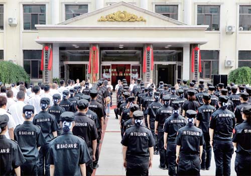 本報訊 8月18日上午,在山西大正保安服務有限公司新址——忻州城區(qū)九原東街2號院內(nèi),保安方陣列隊整齊,盛大的新改組公司揭牌儀式標志著該公司工作業(yè)態(tài)開啟了嶄新的一頁,從此走上加速發(fā)展的快車道。