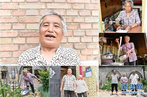 鄭引蘭,女,1949年出生,山西省長治市潞城區(qū)西靳村人,2015年因家人患病而被納入建檔立卡貧困戶?,F(xiàn)在,多項扶貧政策讓全家人的生活有了明顯改善,當?shù)卣畮椭7扛脑斓母G洞也即將完工。 左上:鄭引蘭肖像;右上:鄭引蘭在使用縫紉機;右中:鄭引蘭在廚房盛飯;右下:鄭引蘭(中)一家人合影;下中:鄭引蘭和兒子走出家門;下左:鄭引蘭在院子里給植物澆水(拼版照片,6月12日攝)。 地處晉東南的山西省長治市,位于由太行山、太岳山環(huán)繞而成的上黨盆地中。在群山中、崖壁上,許多村莊自然條件惡劣,基礎設施落后,脫貧致富是大山深處人們的迫切心愿。 近年來,一場場脫貧攻堅戰(zhàn),在一個個深山村打響。政府全力探索脫貧路徑的同時,山區(qū)百姓因地制宜,靠自己的雙手和智慧走上致富路,交出了一份扎實的脫貧答卷。 記者在太行山、太岳山一路尋訪,記錄下多位70歲老人的生活。這些共和國的同齡人,親歷了山鄉(xiāng)的巨變,見證著長治山區(qū)脫貧攻堅偉大工程的一步步推進。 新華社記者 曹陽 攝