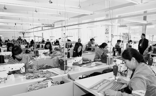 4月16日,河曲縣職業(yè)教育中心服裝加工車間里技術工人正在加班加點趕制夏季服飾。為促進貧困勞動力轉移就業(yè),該縣職教中心去年引進江蘇省常熟市祥鼎祥服飾有限公司,并與之簽訂校企合作協(xié)議,有效帶動農村貧困勞動力轉移就業(yè)。目前已有83名經過培訓的農村貧困婦女成為服裝加工技術工人,月收入2000多元。(鄔耿杰 攝)
