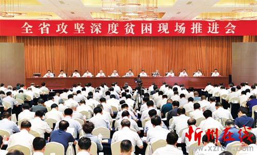 山西日?qǐng)?bào)訊(記者尚慧輝)6月19日,省委在忻州召開(kāi)全省攻堅(jiān)深度貧困現(xiàn)場(chǎng)推進(jìn)會(huì),也是省委中心組擴(kuò)大的專題學(xué)習(xí)會(huì)。會(huì)議以習(xí)近平扶貧思想為指導(dǎo),分析一年來(lái)全省攻堅(jiān)深度貧困形勢(shì),堅(jiān)持目標(biāo)和問(wèn)題導(dǎo)向,激勵(lì)干部更好擔(dān)當(dāng)作為,強(qiáng)化精準(zhǔn)用力舉措,下足繡花功夫,為堅(jiān)決打贏脫貧攻堅(jiān)戰(zhàn)奠定扎實(shí)基礎(chǔ)。省委書(shū)記駱惠寧出席會(huì)議并講話,他強(qiáng)調(diào),要認(rèn)真學(xué)習(xí)貫徹習(xí)近平總書(shū)記對(duì)打贏脫貧攻堅(jiān)戰(zhàn)三年行動(dòng)的重要指示,按照中央指導(dǎo)意見(jiàn)及省委部署,咬定總攻目標(biāo),落細(xì)攻擊點(diǎn)位,完善督戰(zhàn)機(jī)制,奪取戰(zhàn)役全勝。打贏三年脫貧攻堅(jiān)戰(zhàn),必須牢牢抓住主要矛盾、聚焦深度貧困,做到焦點(diǎn)不散、靶心不變,持續(xù)用力、盡銳出戰(zhàn),以攻堅(jiān)深度貧困帶動(dòng)面上扶貧工作。國(guó)務(wù)院扶貧開(kāi)發(fā)領(lǐng)導(dǎo)小組副組長(zhǎng)、國(guó)務(wù)院扶貧辦主任劉永富出席會(huì)議并講話。省委副書(shū)記、省長(zhǎng)樓陽(yáng)生主持會(huì)議。