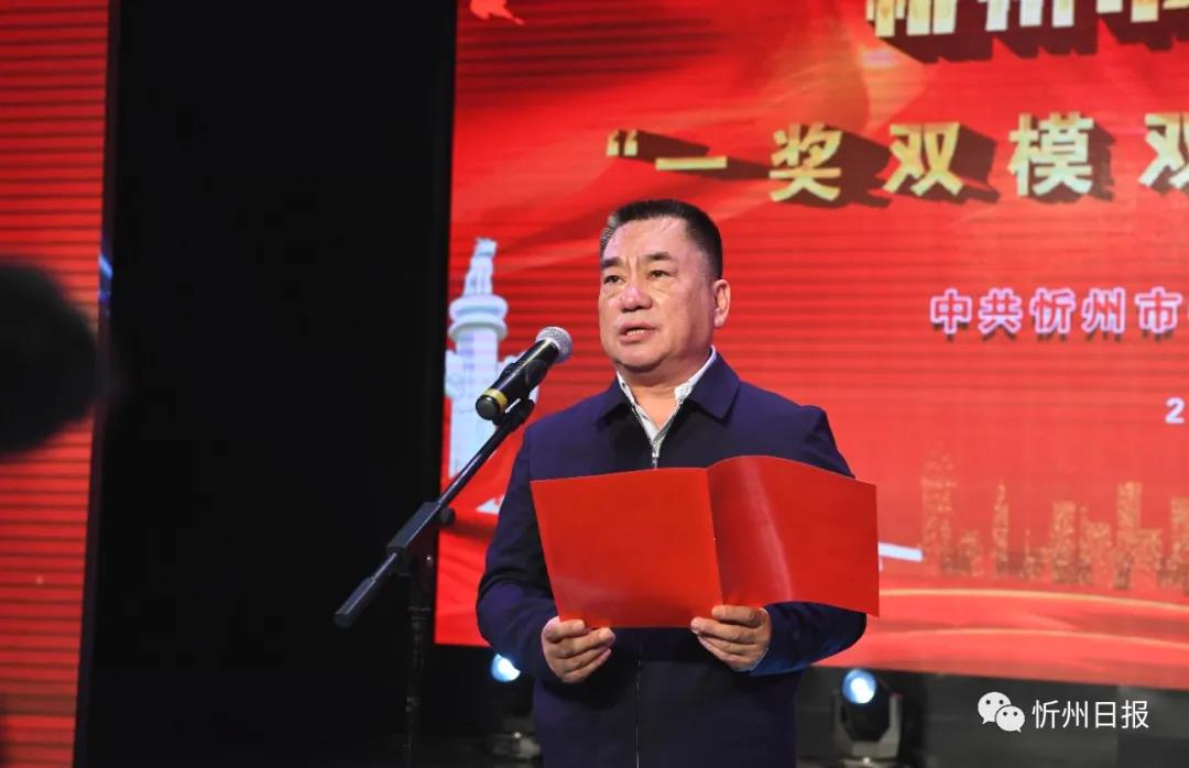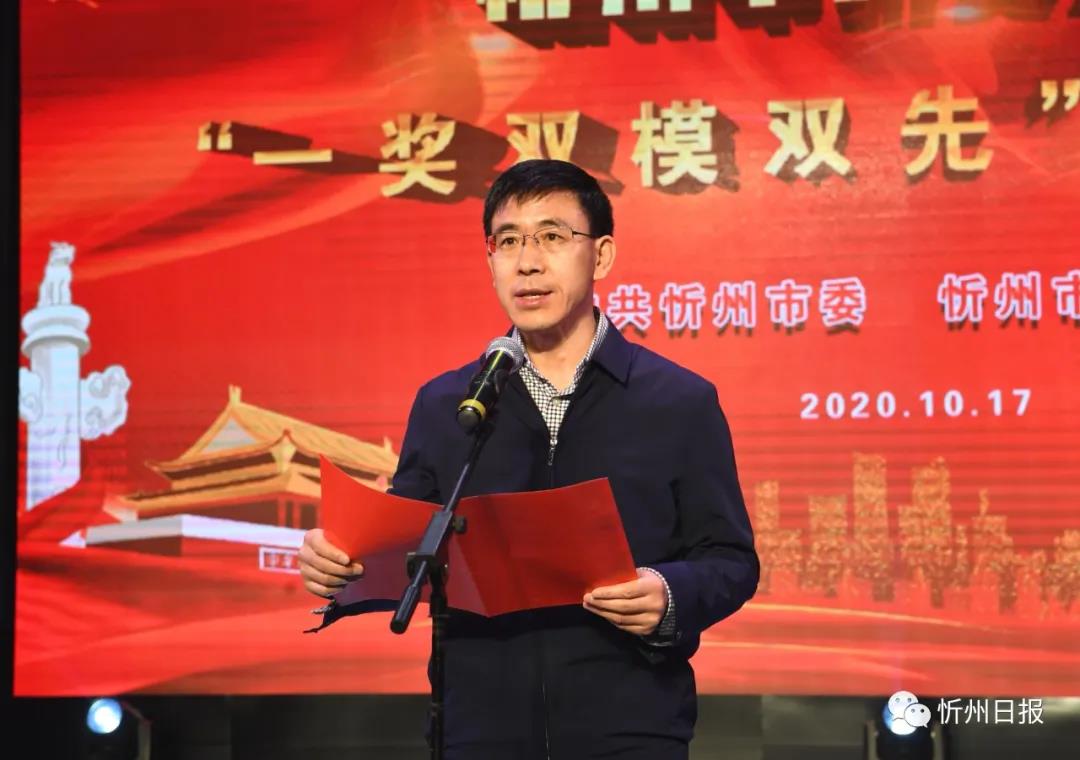 秦書義宣讀《中共忻州市委忻州市人民政府〈關(guān)于表彰2020年忻州市脫貧攻堅“一獎雙模雙先”的決定〉》。劉紀(jì)森攝