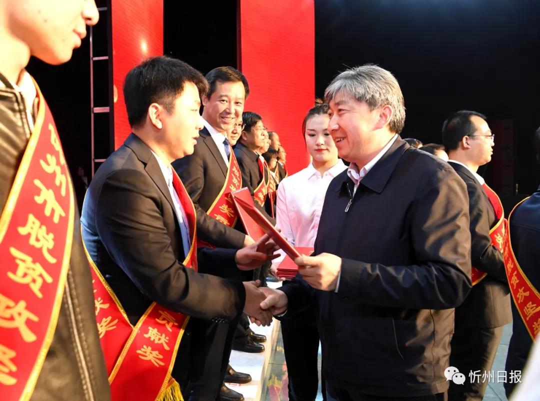 頒獎儀式上,秦書義宣讀了《中共忻州市委忻州市人民政府〈關(guān)于表彰2020年忻州市脫貧攻堅“一獎雙模雙先”的決定〉》,裴峰宣讀了《2020年度忻州市扶貧開發(fā)先進集體和先進個人名單》,與會市領(lǐng)導(dǎo)分別為獲獎?wù)哳C獎。獲獎代表、定襄縣融媒體中心派駐五臺縣東雷鄉(xiāng)北文西村第一書記王丹現(xiàn)場分享了自己的脫貧攻堅工作成效和收獲。