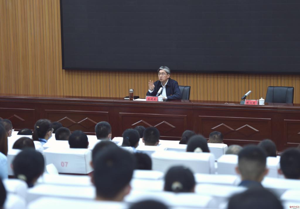 9月19日,市委書記朱曉東來到忻州一中,以“不負韶華爭朝夕,跑出青春加速度,爭做堪當(dāng)民族復(fù)興重任的時代新人”為題,給該校師生講授思政課。他寄語廣大青年學(xué)子要不負建功立業(yè)的人生際遇,不負“天將降大任于斯人”的時代使命,不負黨的期望、人民的期待、民族的重托,讓青春在筑夢、逐夢、圓夢中綻放異彩,真正成為堪當(dāng)民族復(fù)興大任的時代新人,以更飽滿的熱情和更昂揚的狀態(tài)迎接黨的二十大勝利召開。市委常委、秘書長、統(tǒng)戰(zhàn)部部長張文偉,副市長李碩參加。