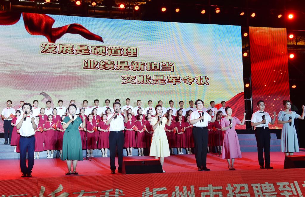 青春向黨,振“忻”有我。7月7日晚,忻州市招聘到村工作大學生風采展示活動在忻州古城北城門樓廣場精彩上演。市委書記朱曉東,市政協(xié)主席范建民,市委常委、秘書長溫建軍,市委常委、組織部長張敏等市領(lǐng)導與社會各界和全市到村工作大學生代表一同觀看。