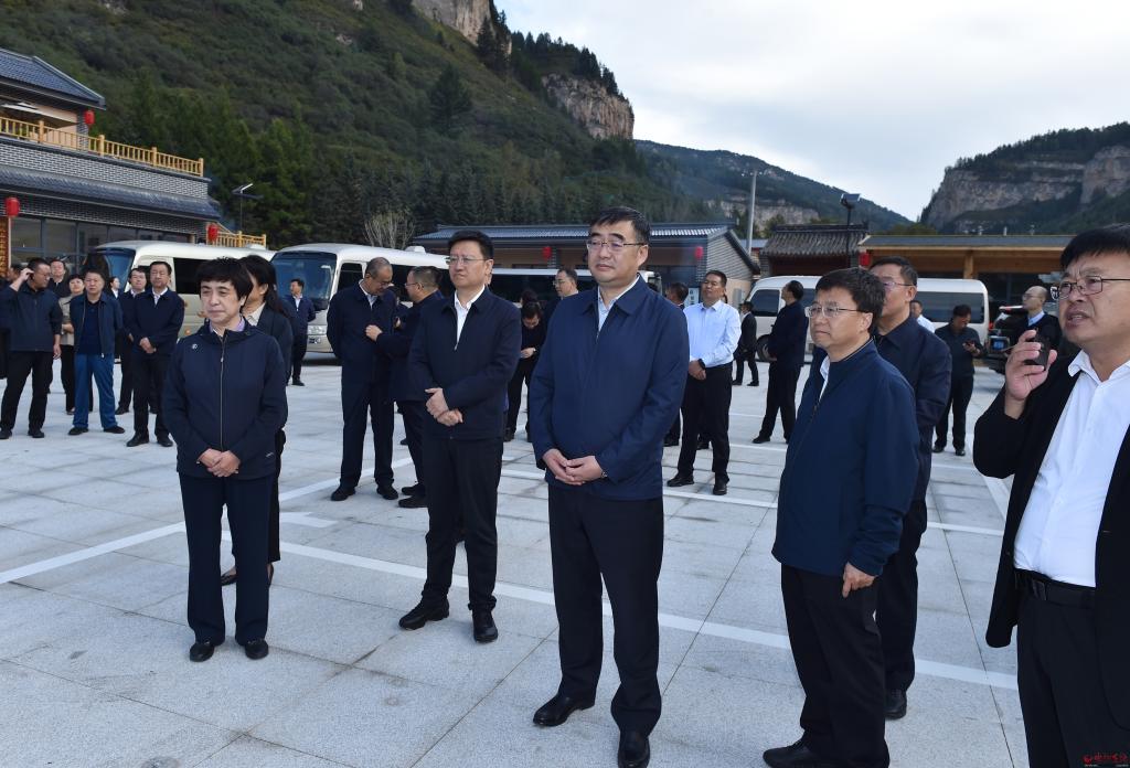 在大石洞村觀摩檢查文旅產業(yè)帶動鄉(xiāng)村振興及發(fā)展壯大村集體經濟情況。馮曉磊 攝