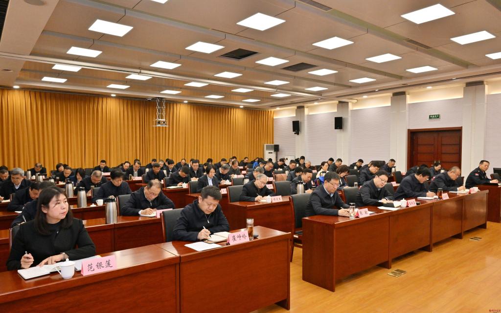 會(huì)議會(huì)場(chǎng)。馮曉磊攝 3月15日,市委常委會(huì)召開(kāi)擴(kuò)大會(huì)議,傳達(dá)學(xué)習(xí)貫徹習(xí)近平總書(shū)記在全國(guó)兩會(huì)期間重要講話(huà)和全國(guó)兩會(huì)精神,認(rèn)真貫徹落實(shí)3月12日省委常委會(huì)會(huì)議精神,研究部署我市具體落實(shí)工作。市委書(shū)記朱曉東主持會(huì)議并講話(huà),市委副書(shū)記、市長(zhǎng)李建國(guó)傳達(dá)全國(guó)兩會(huì)精神。 會(huì)議指出,剛剛閉幕的全國(guó)兩會(huì),是一次高舉旗幟、真抓實(shí)干、團(tuán)結(jié)奮進(jìn)的大會(huì),進(jìn)一步凝聚了共識(shí)、明確了任務(wù)、堅(jiān)定了信心,必將鼓舞和激勵(lì)全國(guó)各族人民更加緊密地團(tuán)結(jié)在以習(xí)近平同志為核心的黨中央周?chē)?,萬(wàn)眾一心,拼搏奮進(jìn),為以中國(guó)式現(xiàn)代化全面推進(jìn)強(qiáng)國(guó)建設(shè)、民族復(fù)興偉業(yè)而不懈奮斗。習(xí)近平總書(shū)記在全國(guó)兩會(huì)期間發(fā)表的重要講話(huà),高屋建瓴、視野宏闊、思想深邃、內(nèi)涵豐富,具有很強(qiáng)的政治性、戰(zhàn)略性、指導(dǎo)性和針對(duì)性,為我們做好各項(xiàng)工作提供了根本遵循。全市各級(jí)各部門(mén)要把學(xué)習(xí)宣傳貫徹習(xí)近平總書(shū)記在全國(guó)兩會(huì)期間的重要講話(huà)和全國(guó)兩會(huì)精神作為當(dāng)前和今后一個(gè)時(shí)期的重大政治任務(wù),與學(xué)習(xí)貫徹黨的二十大精神、學(xué)習(xí)貫徹習(xí)近平總書(shū)記對(duì)山西工作的重要講話(huà)重要指示精神有機(jī)結(jié)合起來(lái),一體學(xué)習(xí)領(lǐng)會(huì)、一體貫徹落實(shí),堅(jiān)定不移沿著習(xí)近平總書(shū)記指引的道路奮勇前進(jìn)。要深刻感悟過(guò)去一年黨和國(guó)家事業(yè)取得的重大成就,堅(jiān)定捍衛(wèi)“兩個(gè)確立”、堅(jiān)決做到“兩個(gè)維護(hù)”;要深刻領(lǐng)會(huì)習(xí)近平總書(shū)記重要講話(huà)精神實(shí)質(zhì),牢牢把握工作主動(dòng)權(quán);要精準(zhǔn)把握黨中央對(duì)當(dāng)前形勢(shì)的科學(xué)判斷和總體要求,進(jìn)一步堅(jiān)定加快發(fā)展的信心和決心。 會(huì)議強(qiáng)調(diào),今年是中華人民共和國(guó)成立75周年,是實(shí)現(xiàn)“十四五”規(guī)劃目標(biāo)任務(wù)的關(guān)鍵一年,做好今年工作意義重大。各級(jí)各部門(mén)要全面對(duì)標(biāo)全國(guó)兩會(huì)關(guān)于做好今年工作的部署安排,抓牢抓實(shí)各項(xiàng)具體工作,全力完成今年經(jīng)濟(jì)社會(huì)發(fā)展各項(xiàng)目標(biāo)任務(wù)。要持續(xù)鞏固經(jīng)濟(jì)回升向好態(tài)勢(shì),全面落實(shí)黨中央穩(wěn)中求進(jìn)、以進(jìn)促穩(wěn)、先立后破的總要求和省委工作部署,緊盯經(jīng)濟(jì)社會(huì)發(fā)展預(yù)期目標(biāo),加強(qiáng)經(jīng)濟(jì)運(yùn)行監(jiān)測(cè)調(diào)度,持續(xù)攻堅(jiān)項(xiàng)目建設(shè),抓好市場(chǎng)主體培育,釋放消費(fèi)需求,優(yōu)化營(yíng)商環(huán)境,全力以赴抓好實(shí)體經(jīng)濟(jì)發(fā)展。要加快培育發(fā)展新質(zhì)生產(chǎn)力,充分發(fā)揮科技創(chuàng)新對(duì)產(chǎn)業(yè)的引領(lǐng)帶動(dòng)作用,以更大力度推動(dòng)產(chǎn)業(yè)轉(zhuǎn)型升級(jí)、實(shí)施制造強(qiáng)忻戰(zhàn)略、發(fā)展數(shù)字經(jīng)濟(jì),促進(jìn)產(chǎn)業(yè)鏈創(chuàng)新鏈人才鏈深度融合,不斷塑造發(fā)展新動(dòng)能新優(yōu)勢(shì)。要全面深化改革創(chuàng)新,用好改革開(kāi)放關(guān)鍵一招,深入實(shí)施創(chuàng)新驅(qū)動(dòng)發(fā)展戰(zhàn)略,持續(xù)深化重點(diǎn)領(lǐng)域改革,加快建設(shè)開(kāi)放發(fā)展前沿城市,充分激發(fā)高質(zhì)量發(fā)展的動(dòng)力活力。要扎實(shí)推進(jìn)美麗忻州建設(shè),深入踐行“綠水青山就是金山銀山”的發(fā)展理念,深入落實(shí)黃河流域生態(tài)保護(hù)和高質(zhì)量發(fā)展戰(zhàn)略,強(qiáng)化污染防治攻堅(jiān),堅(jiān)持山水林田湖草沙系統(tǒng)治理,持續(xù)推動(dòng)發(fā)展方式綠色轉(zhuǎn)型,筑牢高質(zhì)量發(fā)展綠色屏障。要持續(xù)增進(jìn)民生福祉,深入實(shí)施就業(yè)優(yōu)先戰(zhàn)略,努力辦好人民滿(mǎn)意的教育,高標(biāo)準(zhǔn)實(shí)施強(qiáng)醫(yī)工程,健全多層次社會(huì)保障體系,全面推進(jìn)鄉(xiāng)村振興,不斷增強(qiáng)人民群眾的獲得感幸福感安全感。要全力維護(hù)社會(huì)大局穩(wěn)定,深入貫徹總體國(guó)家安全觀,堅(jiān)決維護(hù)國(guó)家政治安全;深入開(kāi)展安全生產(chǎn)治本攻堅(jiān)三年行動(dòng),嚴(yán)格落實(shí)“三管三必須”要求,深化落實(shí)“543”工作機(jī)制,強(qiáng)化預(yù)警監(jiān)測(cè)和隱患排查,全力保障人民群眾生命財(cái)產(chǎn)安全;堅(jiān)持和發(fā)展新時(shí)代“楓橋經(jīng)驗(yàn)”,加快矛盾糾紛“一站式”化解平臺(tái)規(guī)范化建設(shè),健全立體化信息化治安防控體系。要廣泛凝聚高質(zhì)量發(fā)展合力,全力支持和保障人大及其常委會(huì)依法履職盡責(zé),不斷加強(qiáng)和改進(jìn)新時(shí)代人大工作;充分發(fā)揮人民政協(xié)“重要陣地、重要平臺(tái)、重要渠道”
